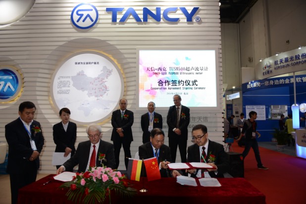本次北京參展還有一項(xiàng)重要議程,西克天信USM500超聲波流量計(jì)合作協(xié)議簽約儀式于10:00正式開(kāi)始,參加簽約儀式的有來(lái)自北京西克麥哈克公司和德國(guó)西克的領(lǐng)導(dǎo)以及天信公司董事長(zhǎng),總裁,技術(shù)總監(jiān),參展商代表等。營(yíng)銷(xiāo)中心總監(jiān)范曄主持簽約儀式,陳開(kāi)云董事長(zhǎng)致歡迎辭,西克銷(xiāo)售經(jīng)理班吉爾先生代表西克公司發(fā)表致辭。本儀式簡(jiǎn)約而隆重,許多載入天信展會(huì)上的許多參展商也應(yīng)聲來(lái)到天信展臺(tái),為之喝彩。本次合作,有利于發(fā)揮各自?xún)?yōu)勢(shì),深化互利合作,共同推進(jìn)超聲波流量計(jì)產(chǎn)品及技術(shù)領(lǐng)域的長(zhǎng)足發(fā)展。